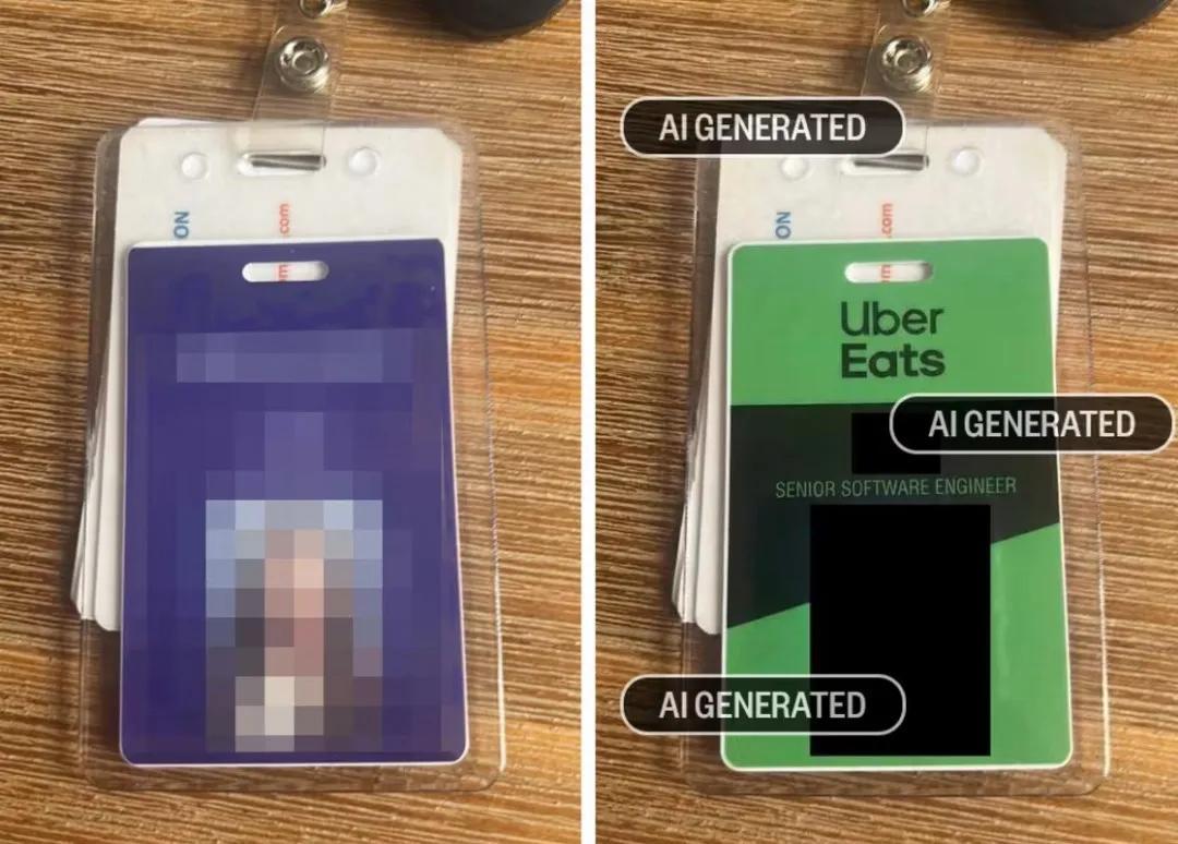 NBC新聞發出的報道則更有力了:這張虛假的工牌照片,就是利用NBC記者發給帖主的工牌照片生成的。而被迫接鍋的“美國外賣公司” Uber的發言人表示,Uber Eats根本就沒工牌。