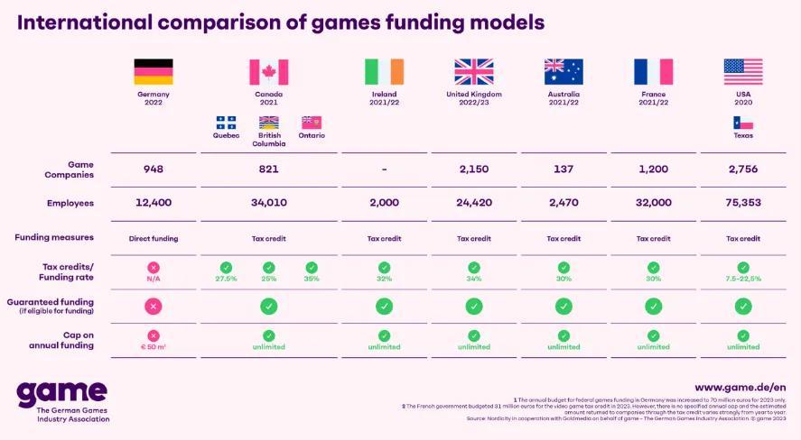 相比之下,新政府的態度更加明確、積極,這也讓德國遊戲行業有望與國際化的稅收激勵機制對齊。縱觀歐美各國,對於本土遊戲行業的支持,除了真金白銀的財政資助,通常也會配合以稅收優惠。