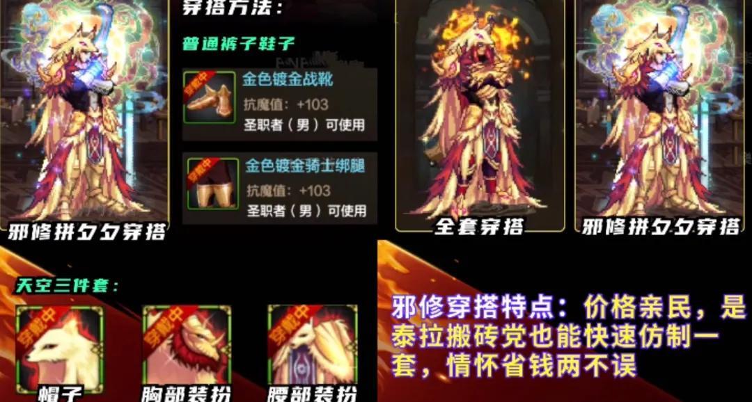 如果你選擇“金色狐狸頭”,那麼需要補上鍍金上衣、鍍金騎士綁腿、鍍金騎士戰靴;