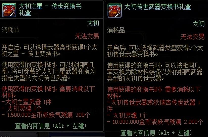 【2】太初傳世武器變換書,240個災厄之種兌換,需消耗1個太初靈魂+1000萬金幣或000個妖氣殘痕!