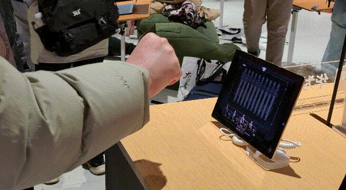 現場試玩中,我在一臺鴻蒙設備前做出手勢操作(很像用手“拿一下”),就可以直接把這臺設備上的《太吾繪卷》存檔隔空“抓取”到另一臺設備上。
