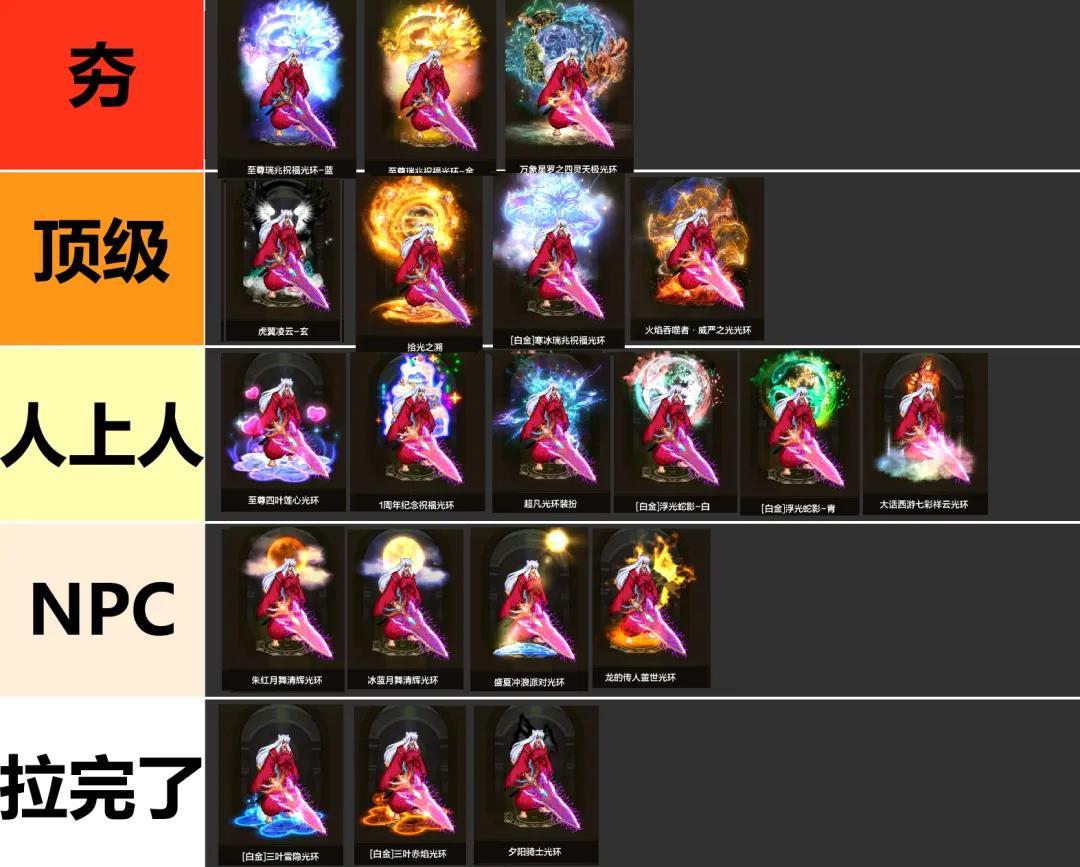 以上就是手遊開服至今最熱門的20款光環了,其中“T0級”和“T1級”都算得上現版本顏值擔當了,隨便擁有一款都能成爲大街上最靚的仔!