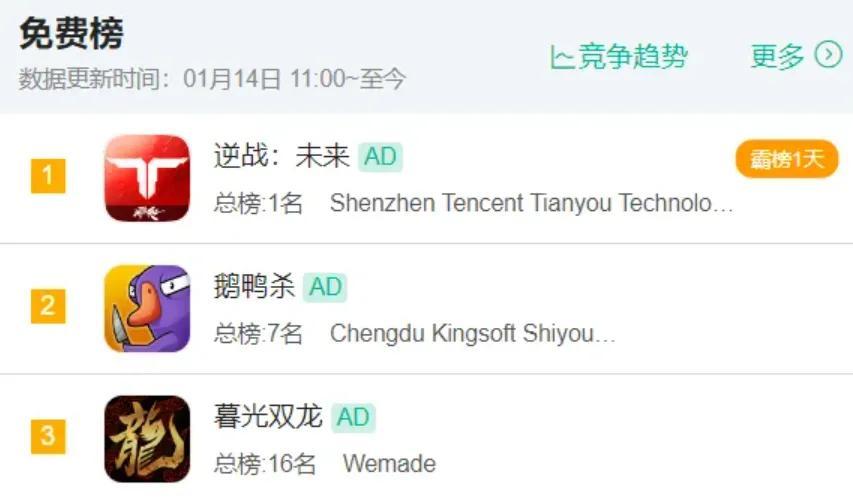 1月13日,娛美德面向國內市場,推出了其正統傳奇IP的新作《暮光雙龍》,公測上線當天迅速躋身iOS遊戲免費榜前三,算是MMO市場第一季度的首個爆款。
