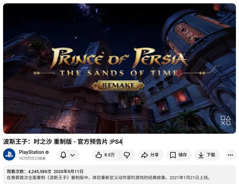 也正是在2020年9月的Ubisoft Forward發佈會上,《時之砂RE》在幾乎沒有任何預熱的情況下公佈,直接定檔2021年1月21日,一時收穫極大的關注。