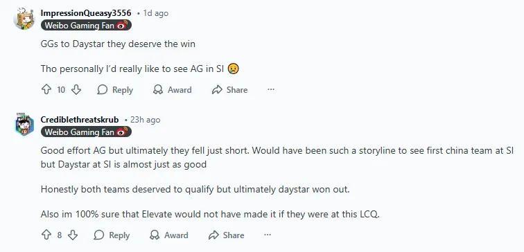這個故事的結局並不圓滿。在剛結束不久的LCQ上,一路過關斬將的AG戰隊在總決賽憾負Daystar,止步於距SI 2026僅有一步之遙的地方。但是作爲CNR6新的希望,他們已經比許多人的預期走得遠,收穫了國內外玩家的尊重和祝福。