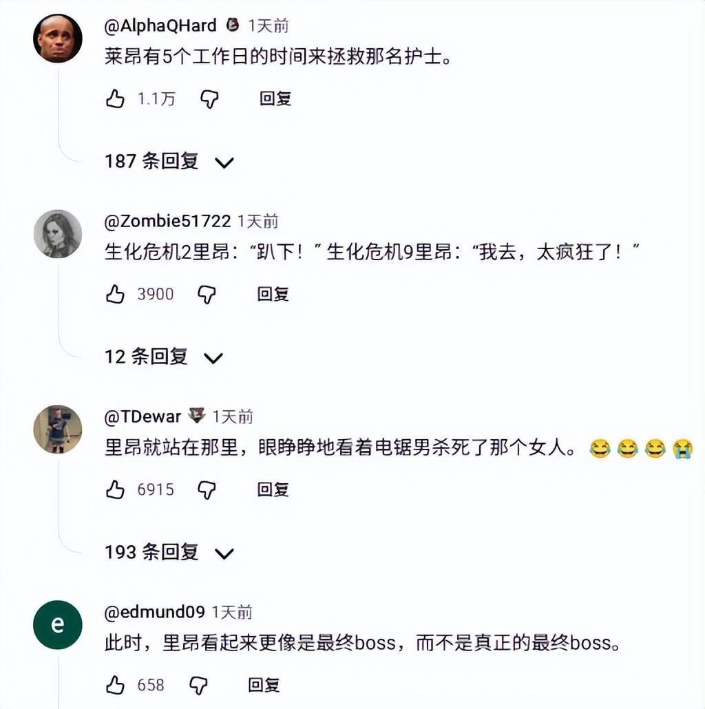 卡普空官號下的討論基本全是“里昂見死不救”