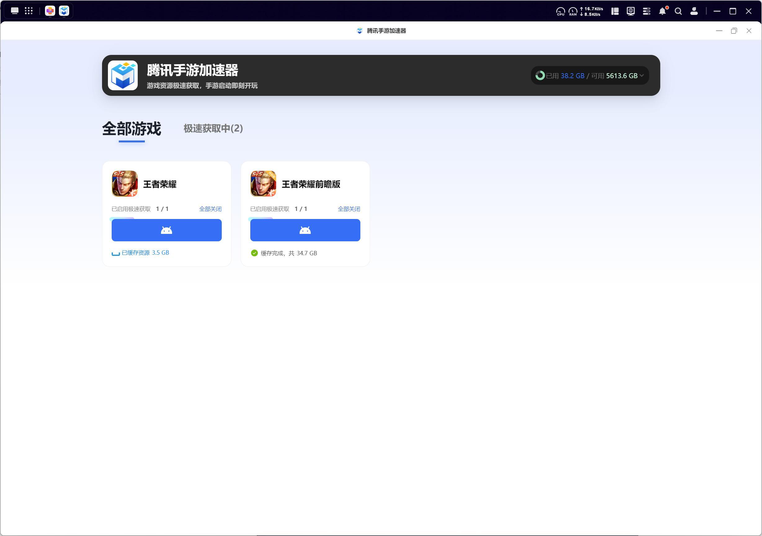 緊接着我們打開該應用,對《王者榮耀》遊戲進行提前緩存下載。這裏需要注意的是預估緩存時間爲30分鐘,等待緩存完即可進行手機端更新。如果你是王者榮耀前瞻版用戶,則選擇王者榮耀前瞻版資源提前緩存;如果是王者榮耀用戶,則選擇王者榮耀資源提前緩存。