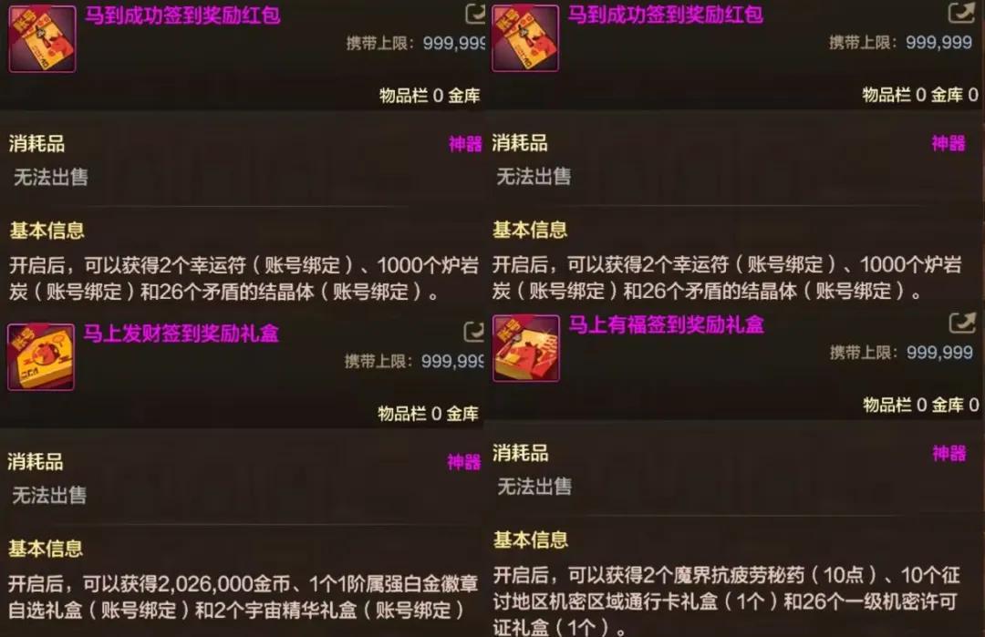 DNF手遊:春節獎勵大彙總,202.6萬金幣+52個矛盾,70B史詩減負!