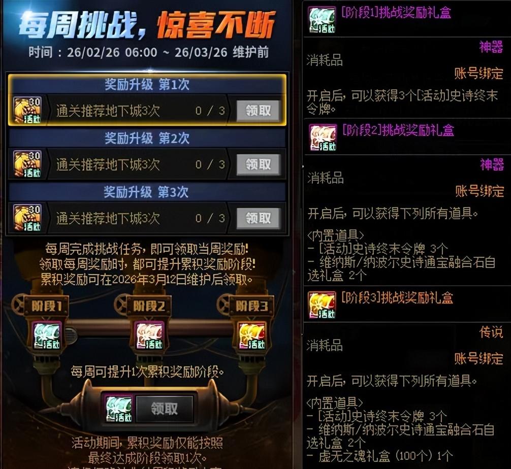 然後累計提升3個檔次,最高檔可以領取3個史詩令牌、2個自選通寶、以及100個虛無之魂。