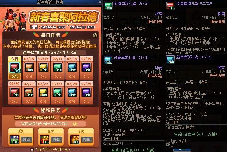 每天通關4次即可完成簽到,核心獎勵主要有: