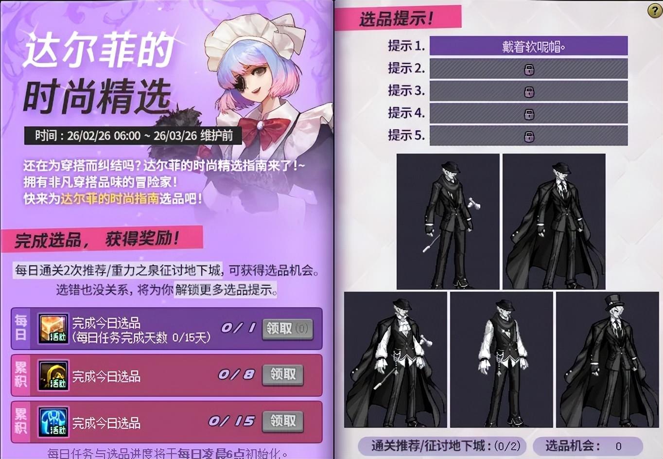 從另外一個活動“達爾菲時尚精選”中,也可以免費拿到這套時裝和武器裝扮,但該活動需要等到2.26更新後纔會上線!