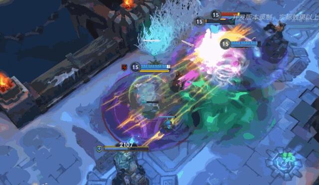 其中最富特色的就是她的大招了。簡單來說,她的大招就是遠程丟下一個大範圍內的圈,然後把敵方英雄當做水果來切,完全基於手遊“划動”的操作來設計。