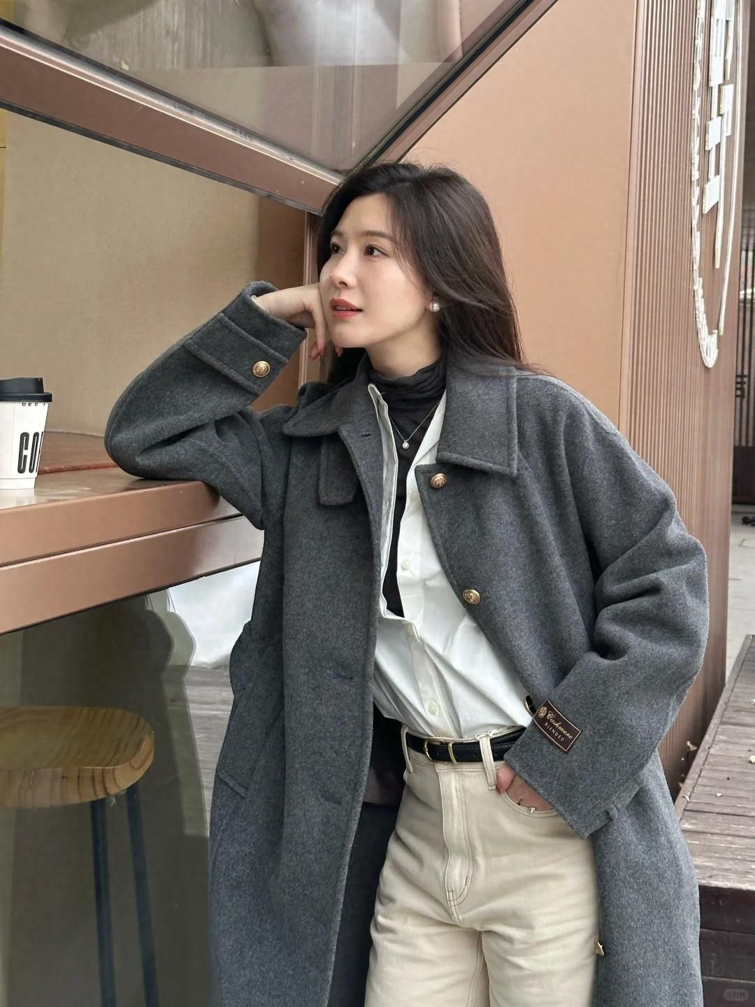 今冬火了一種穿搭:灰大衣疊穿白襯衫,這麼穿時髦有型有高級感