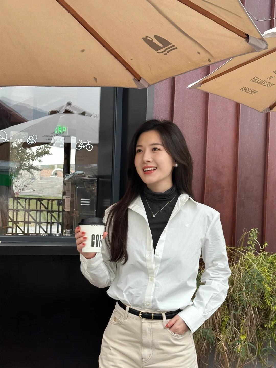 穿搭講究協調性,內搭和外套呼應,褲子則可以和襯衫的顏色相呼應。不一定非得是一模一樣的純白色,同色系偏米、偏灰都可以,同色系不同顏色的搭配,既能夠保持協調性,又可以增加穿搭的層次感。