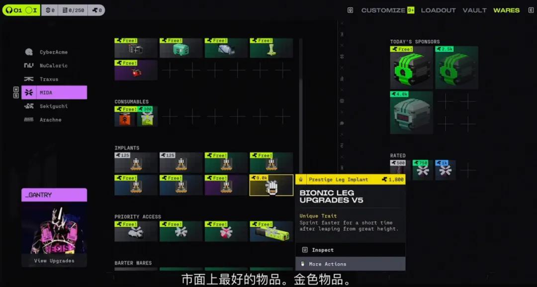 除了令人耳目一新的局內對抗,《馬拉松》的試玩版本也展示了初步自洽的局外養成要素。玩家“疾行者”要給好幾家反抗UESC的陣營打工完成任務獲取聲望,再像點天賦樹一樣,換取角色基礎性能的提升、倉庫擴容、更高級裝備的購買權限等福利。