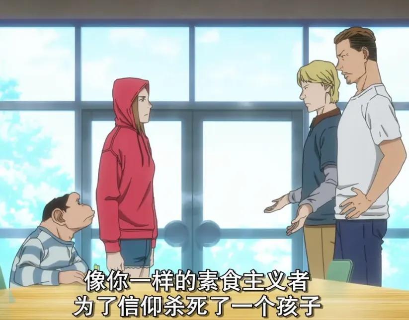 我看這段時基本就什麼也沒聽進去,只盼着來個喫葷的加入辯論,這世上不是隻有極端素食主義和溫和素食主義,喫素對身體而言也絕不是什麼“更好或更健康的選擇”。