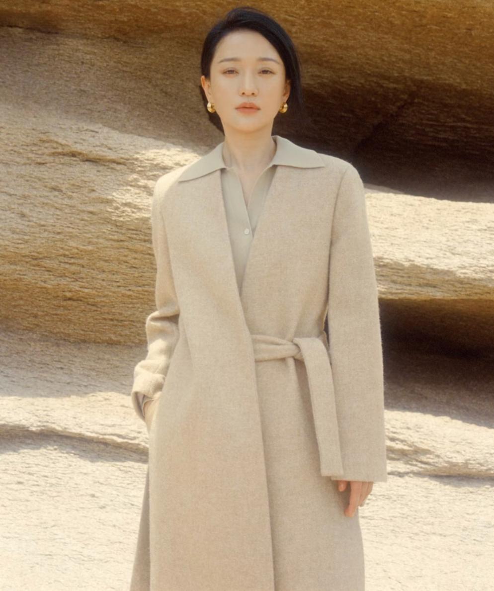 比起羽絨服來說雙面呢更透露出高級感,如果預算一般可以選擇純羊毛的,上身垂墜感很好,顯得整個人很板正的感覺;如果預算足夠建議選擇含山羊絨的大衣,自帶有一定光澤感,顯得很貴氣的效果。
