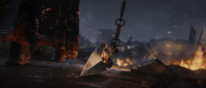 我們可以從中看到,“長夜終盡”的外觀、武器、特效,都是圍繞這團火來組織的——從甲冑的冷硬輪廓到鏈刃的運動軌跡,再到鐵花爆開的那一下“亮堂”,它們是同一種主題的不同表達。