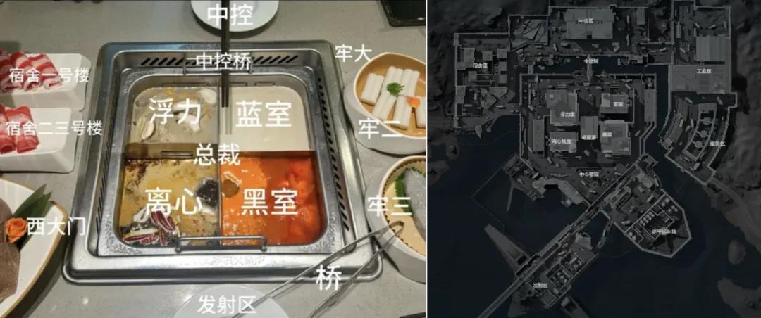 不知是社區裏哪個喫貨,發現“航天基地”核心區四座大樓的設計,像極了海底撈的四宮格火鍋,最終衍生出了用海底撈還原“航天基地”的梗圖。這次聯動對社區梗圖的致敬,無異於爲了這碟醋包的餃子——但過年嘛,就該喫喫餃子、喫點熱乎的東西。
