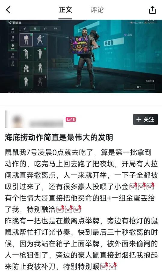 這套動作很受玩家歡迎,突出一個“自己不尷尬尷尬的就是別人”,不但頗具節日代入感和沉浸感,還能通過向陌生人傳遞祝福的形式,起到幫助鼠鼠玩家求饒、實現和平撤離的奇妙效果。