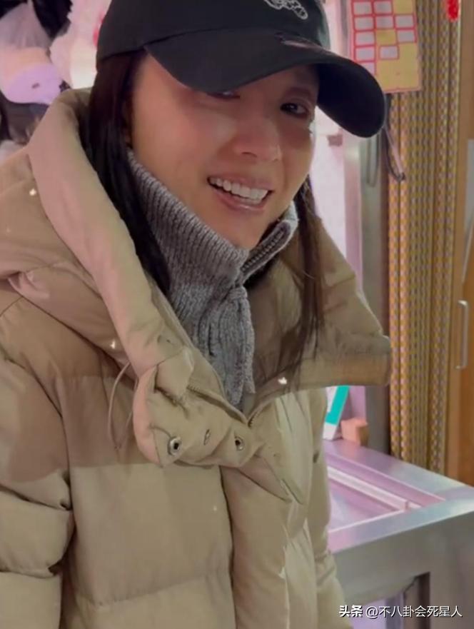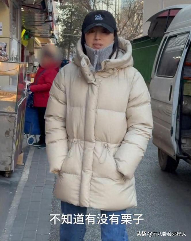 穿着厚重的羽絨服,帶着鴨舌帽的董潔,站在東北的街頭,感受着與普通人一樣的過年氣氛。