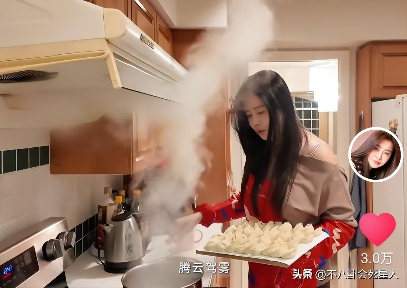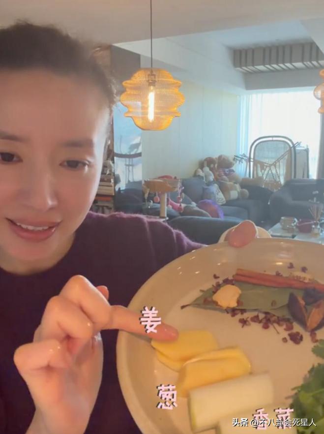 脫掉外套的董潔,依舊纖細,簡單的紮了頭髮,就凸顯了她清秀的五官。董潔在社交賬號上,一一展示配料,做法嫺熟,一看就是經常下廚的。