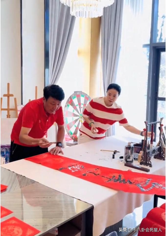 奧運冠軍王楠就很傳統了,大年這天,她跟老公郭斌忙着寫春聯。郭斌主筆,她和兒子就在一旁幫忙。