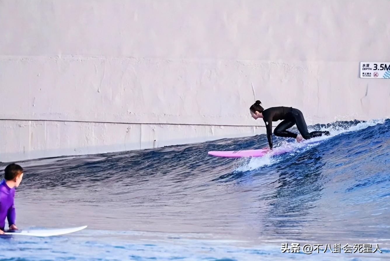 另外一名女星---吳謹言,就顯得清閒多了,有網友在三亞遇到了她跟老公一起在海邊衝浪。