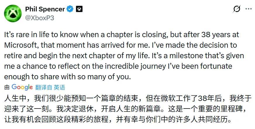 對全球玩家而言,斯賓塞作爲“Xbox掌門人”的任期,幾乎與Xbox的兩個世代完全重疊,他本人也因此成了Xbox歷史裏最醒目的註腳。