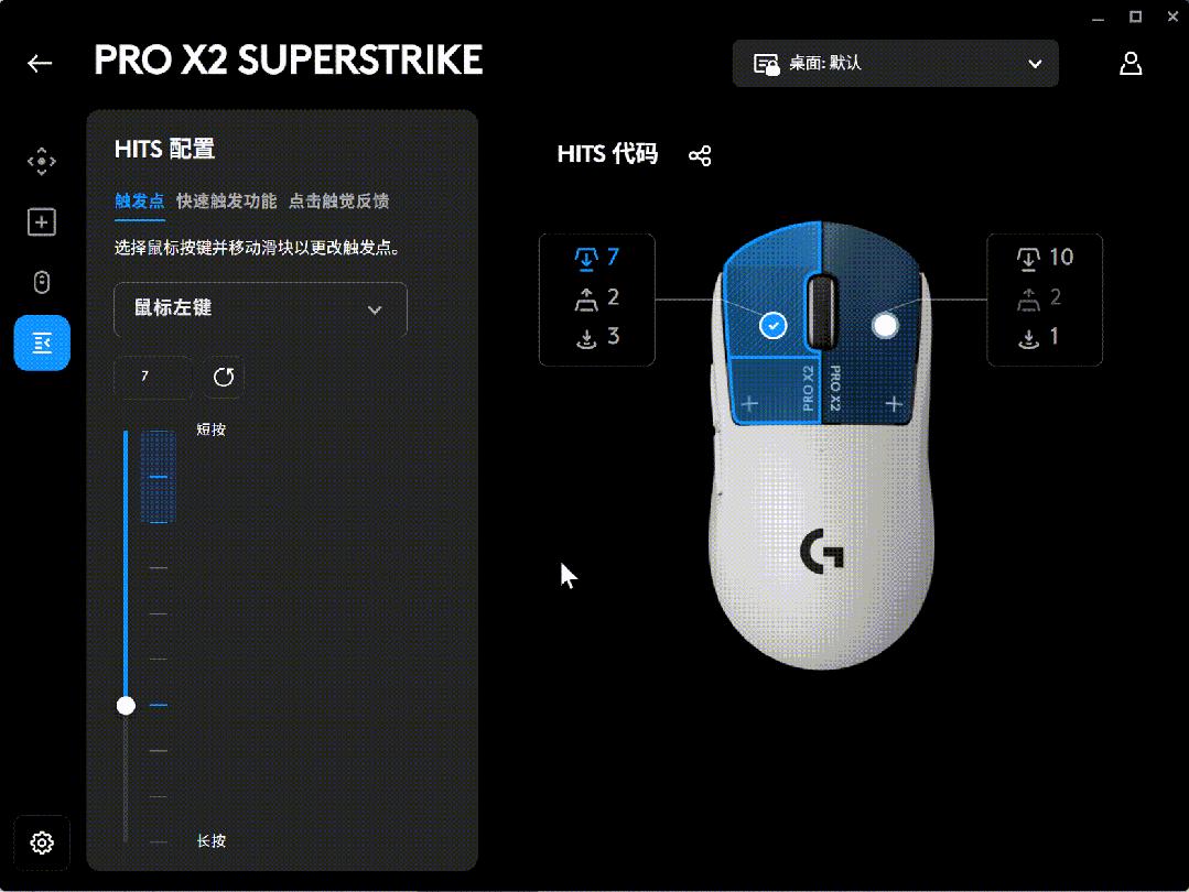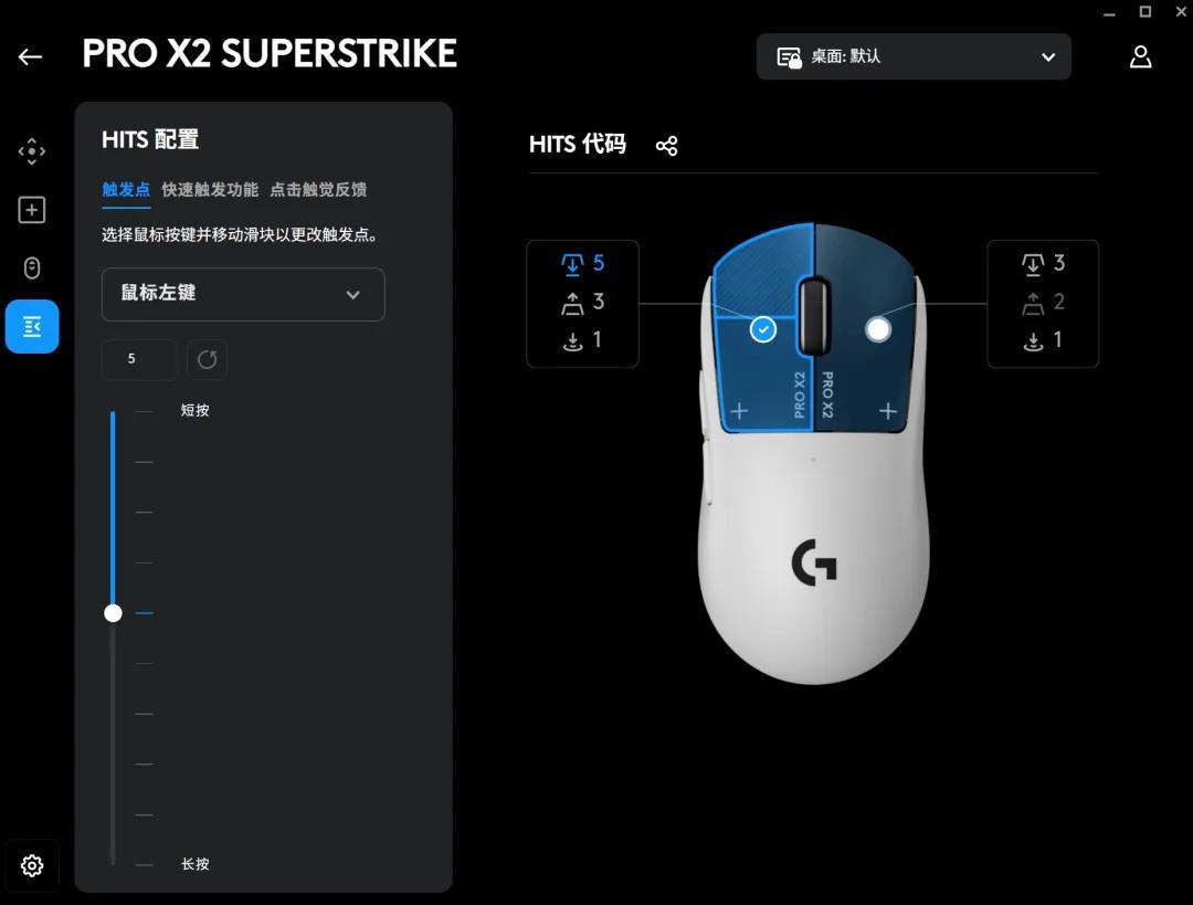 通過官方軟件G HUB,玩家就可以對HITS系統下的“觸發點”“快速觸發功能”和“點擊觸覺反饋”3項參數進行設置。