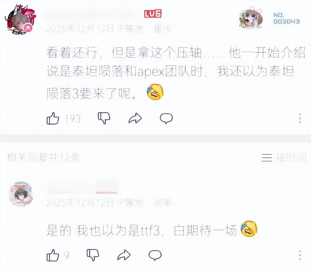 站在不少玩家的視角,作爲壓軸登場,再加上Geoff介紹時提到的“泰坦隕落和Apex團隊”等關鍵詞,讓不少觀衆有了過高的期待,而當期待落空時,印象自然也不會太好。
