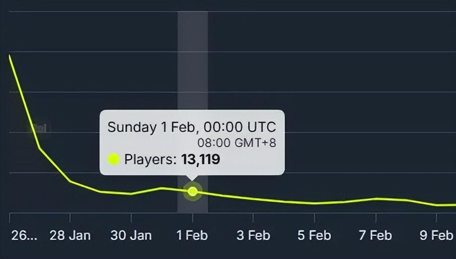 通俗易懂的解釋就是“玩的人太少了”,根據數據網站Steam DB顯示,如今遊戲24小時內的峯值在線人數僅爲460人。