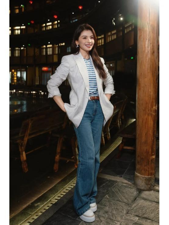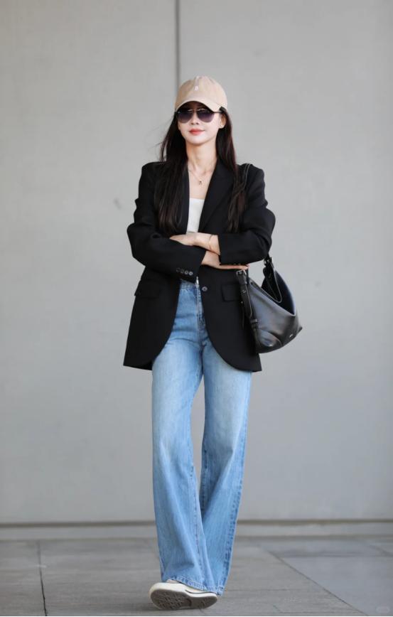 西裝作爲職場感十足的服飾自不必多說,牛仔褲休閒隨性又顯年輕。而且比西褲要彈比裙子又要方便,適配場景也更加豐富多元化。