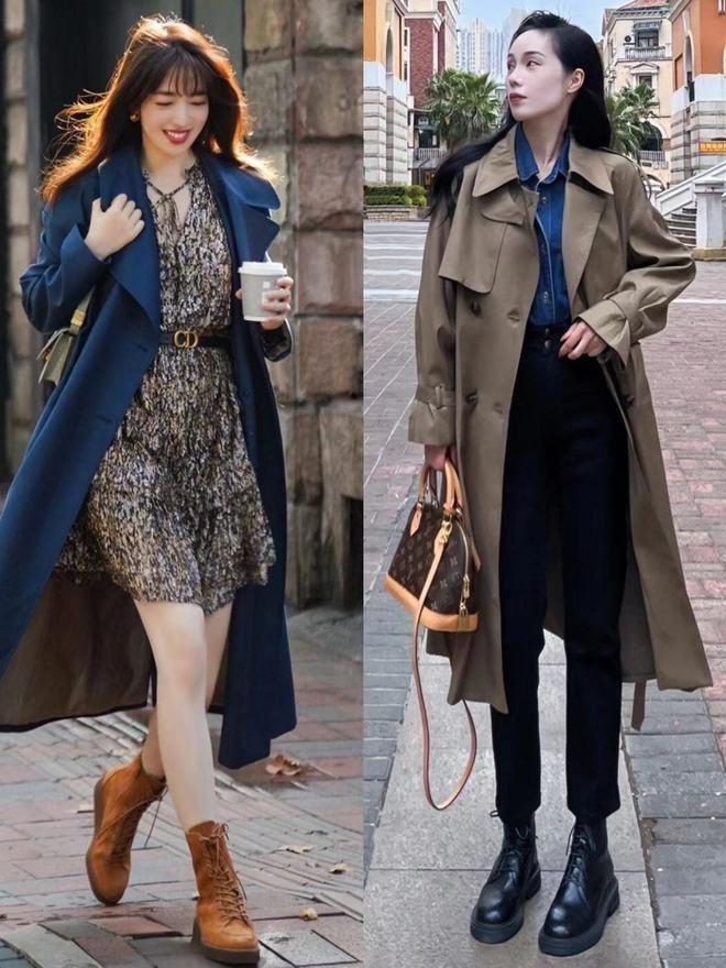 厚底馬丁靴更加經典,厚底設計直接暴加身高,自帶又酷又帥的幹練感。加上深色風衣身形變得挺拔自信,有一種不好惹的幹練時髦氣質,有一種力量感,這個穿搭非常適合職場穿搭。