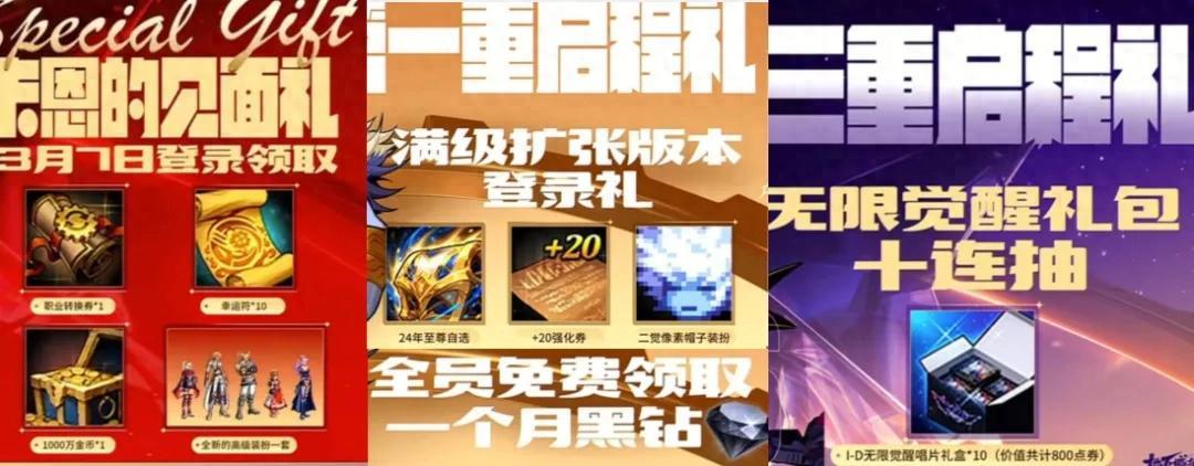 第一、3.7號上線可領取:轉職書+10張幸運符+1000萬金幣+1套高級時裝