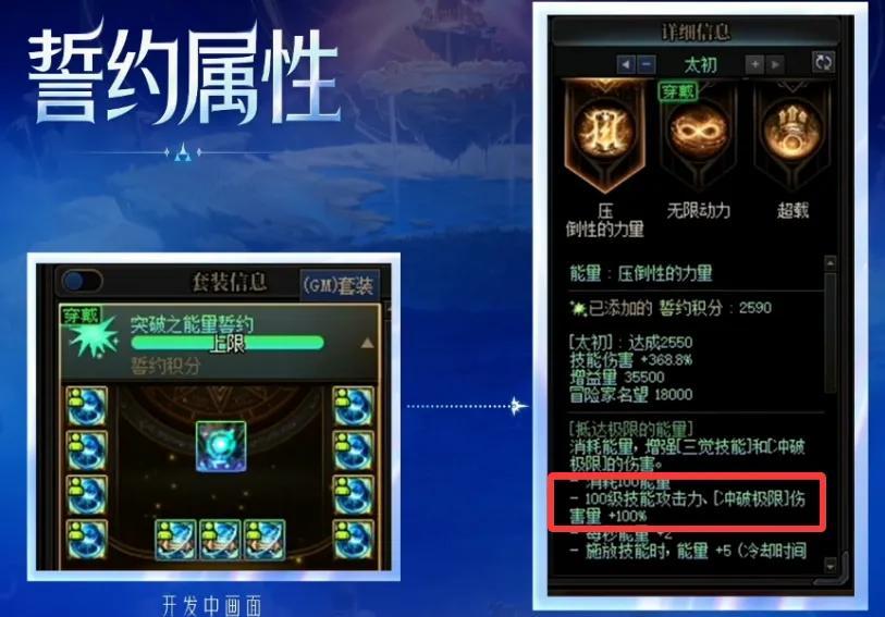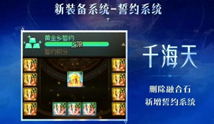 千海天發佈會爆料了一個新玩法“誓約系統”,簡單來說就是現有套裝的升級延續。