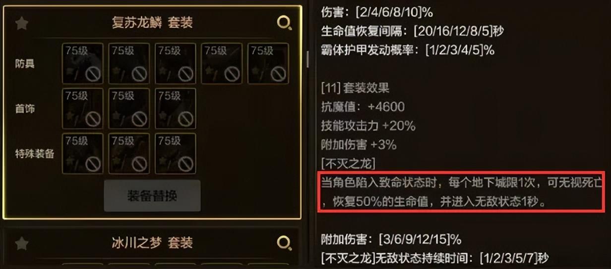 增加自身高額防禦和減傷效果,自帶回血效果、自帶復活幣效果(每個地下城限1次)。