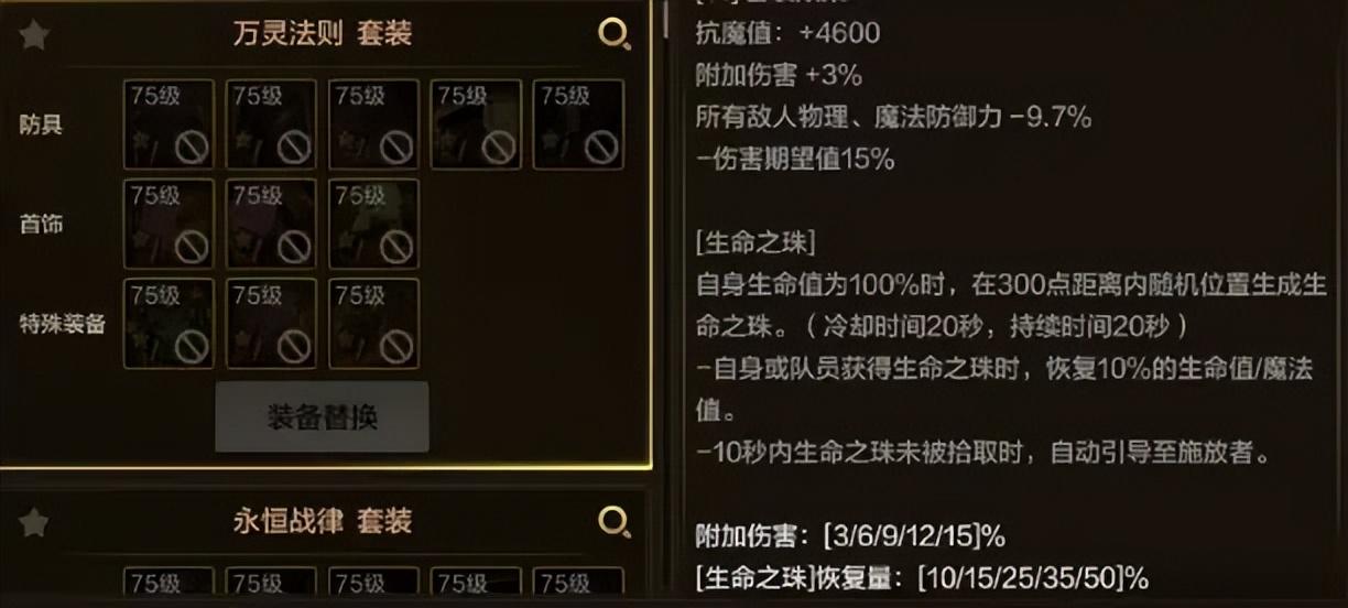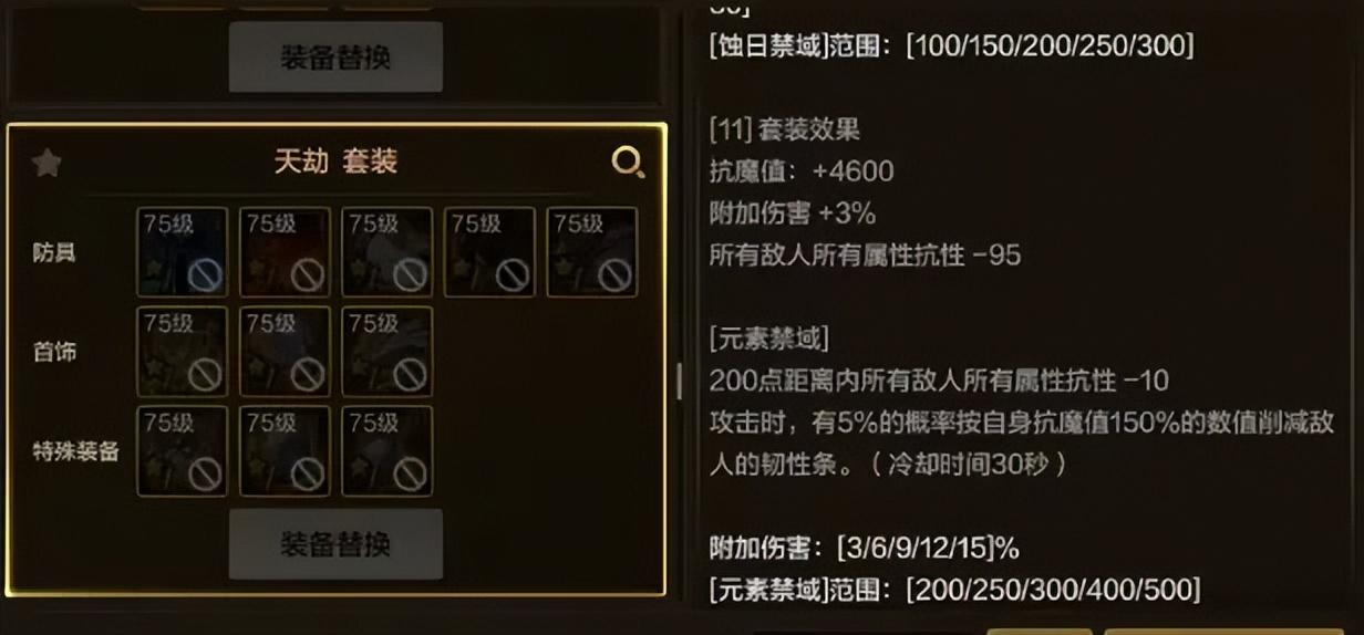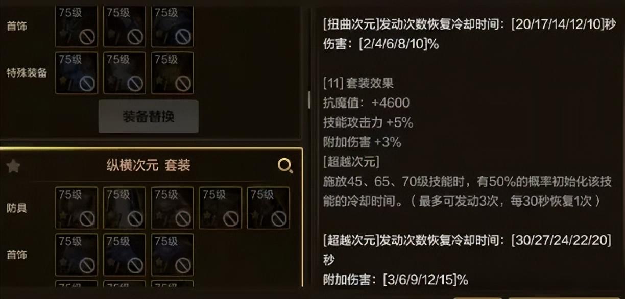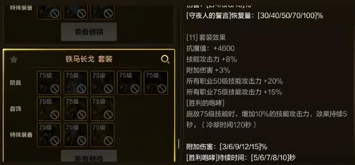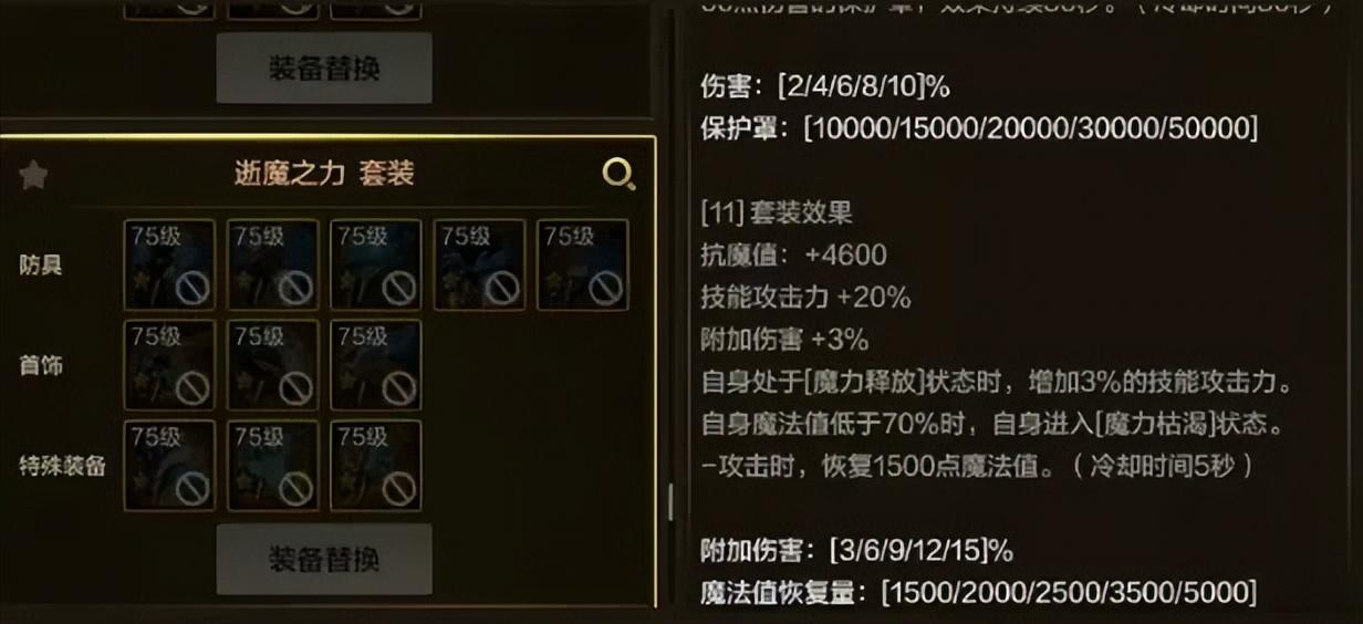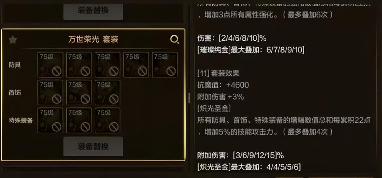 通常來說呢,這種依賴於強化/增幅的套裝一般都是標準答案,但最高需要增幅88點才能完美觸發(全身紅7以上),有一定打造難度!