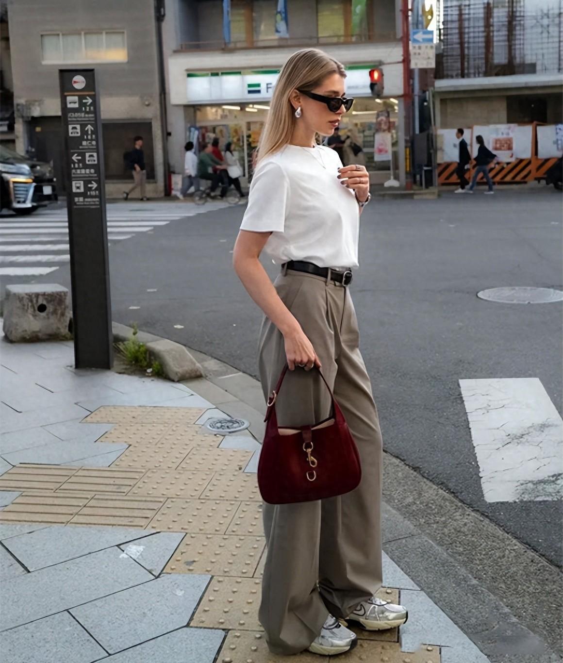 而且西裝闊腿褲可以滿足各種場景,無論是職場通勤、商務會面,亦或者是逛街度假,通通都能穿。一條就能盤活整個衣櫥,搭配襯衫、西裝、馬甲、T恤都沒有難度,腳踩樂福鞋、高跟鞋、穆勒鞋也很合拍。