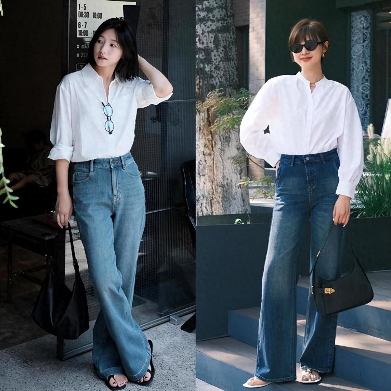 作爲橫跨春夏秋冬的“神褲”,每個人的衣櫥裏,都會有各種款式的牛仔褲。其中最常見的就是直筒褲,硬挺的面料+筆直的線條,對身材的修飾達到了頂端,搭配白襯衫堪稱一絕。衣襬塞進褲腰穿,袖子挽起來露出手臂,隨性又鬆弛,簡直誰穿誰美!