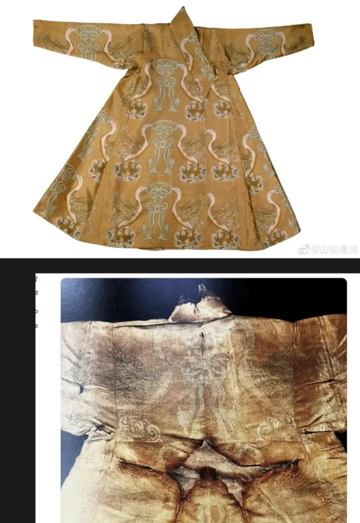 創作者包裏還有不少直接參考出土文物的服飾。比如“遼雁銜綬帶錦袍”,就參考了代欽塔拉遼墓出土的左衽交領袍。