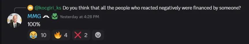 2025年5月,在遊戲上線遭到差評後,有玩家在官方的Discord頻道上向CEO Mark提問:“你覺得那些發出負面評價的人,都是被某人指使的嗎?”