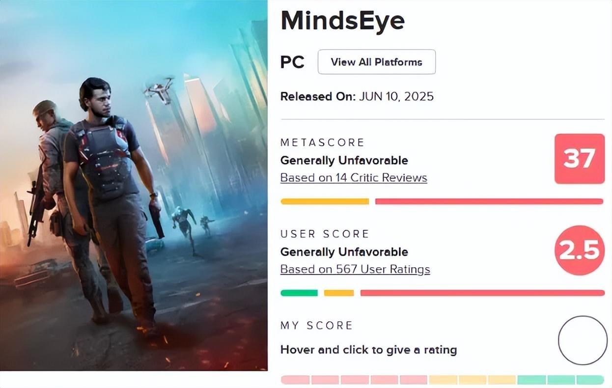 去年年底,評分網站Metacritic列出了一份“最差遊戲榜”,將2025年發售作品中媒體評分最低的幾款專門挑了出來。而由前GTA製作人Leslie Benzies牽頭開發的《心之眼》(Mindeyes)則成功以37的最低分成爲“年度最差”。
