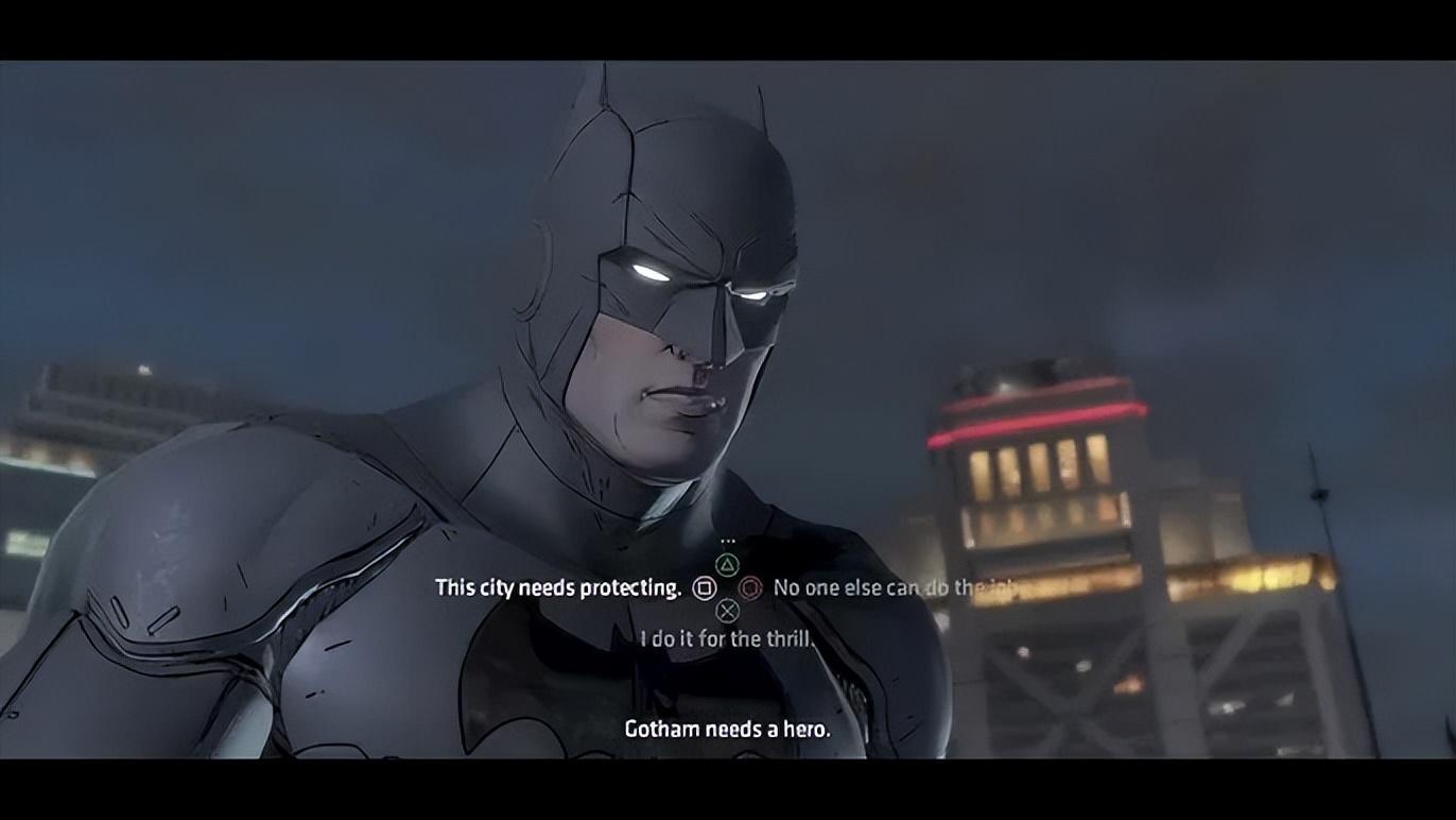與此同時,這個敘事需要,又碰上了他們以前在Telltale做《蝙蝠俠》系列遊戲時沒能實現的一箇舊點子:他們原本曾想用一個慢慢推進少年布魯斯·韋恩躺在雪地裏的鏡頭開場,鼻血慢慢流出,畫面黑白交錯,但最後沒有被採用。