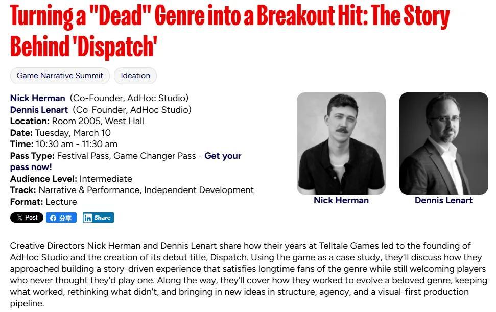昨天,《超英派遣中心》開發團隊AdHoc Studio的兩位開發總監Nick Herman和Dennis Lenart,便以前文的“已死類型”作爲主題,在GDC 2026上分享了這款作品誕生背後的故事。