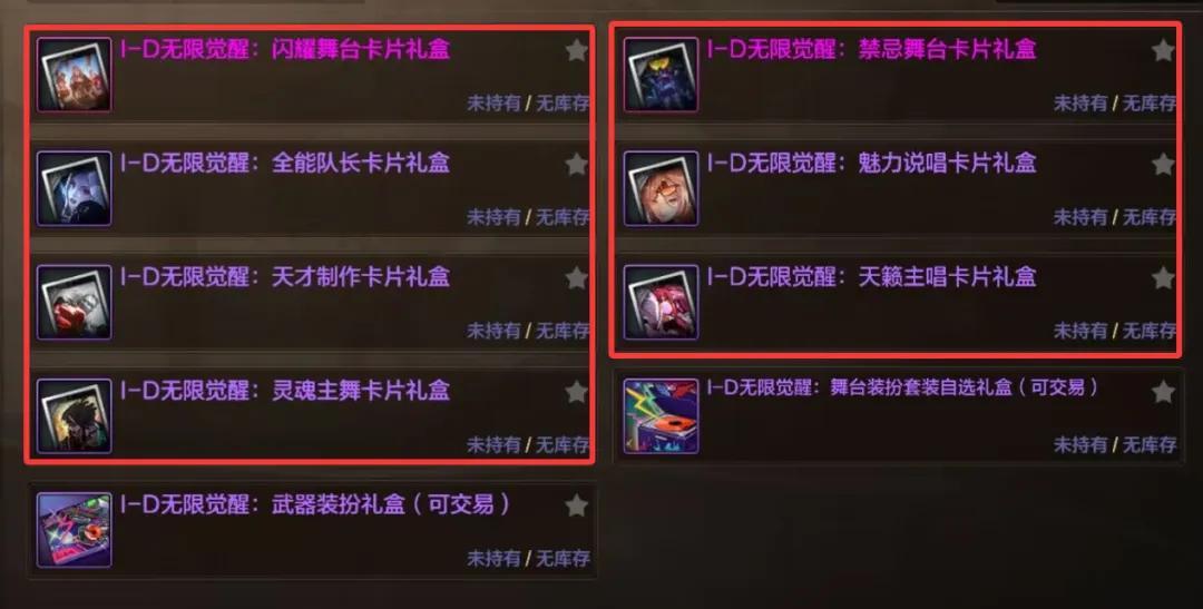 “女團禮包”主要分爲2個部分:“時裝和武器裝扮”主打外觀效果,而“卡片”則是主打收集箱提升,卡片本身屬性幾乎等於零!