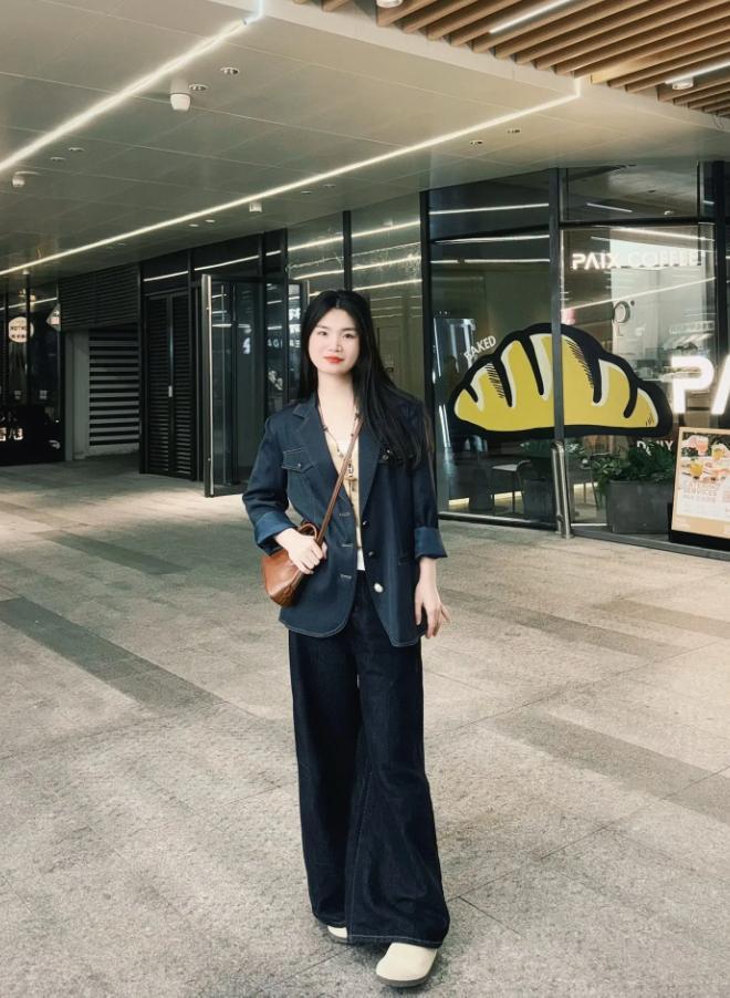 牛仔套裝也很適合春天穿,一身牛仔鬆弛又有型,堪稱最不費力的搭配模式。棕藍色的牛仔西裝配闊腿褲,乾淨清爽還減齡。配雙燕麥色勃肯鞋,配色“深淺分明”,巧妙規避了繁複,凸現出了高級質感。