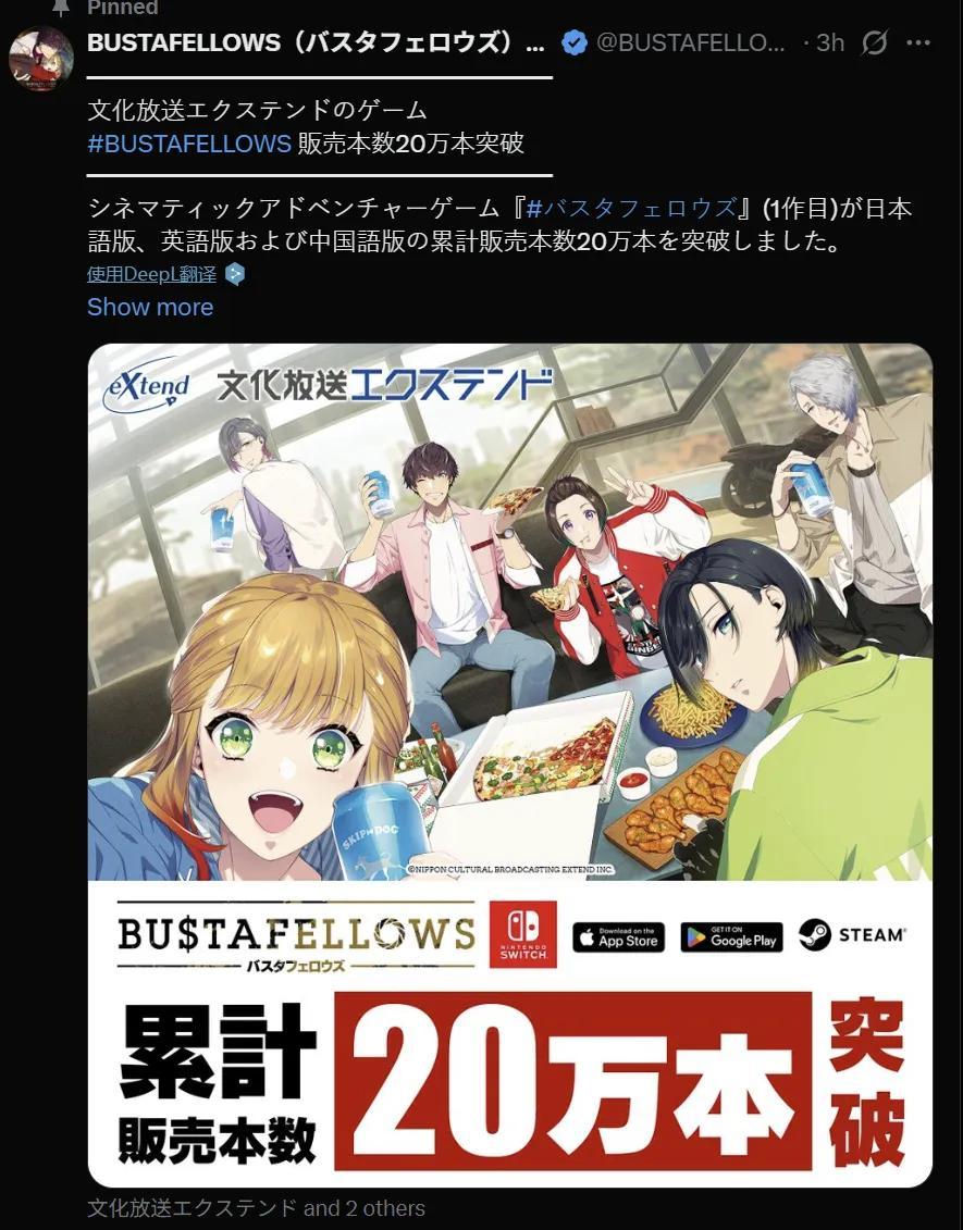 以至於無論是否對日乙感興趣,許多玩家都藉着這個機會領到了“雞蛋”。其中參與折扣的一部《BUSTAFELLOWS》,在幾小時前發佈了全渠道總量突破20萬部銷量的喜報。