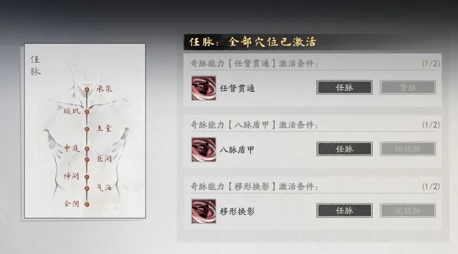 這主要是因爲,遊戲幾乎在各個戰力養成的模塊上都或多或少給出了選擇的空間。比如武俠玩家很熟悉的打通經脈加點機制,在《劍隱俠蹤錄》中就還有順運或逆運的說法,激活不同的經脈則會產生各異的奇脈能力。