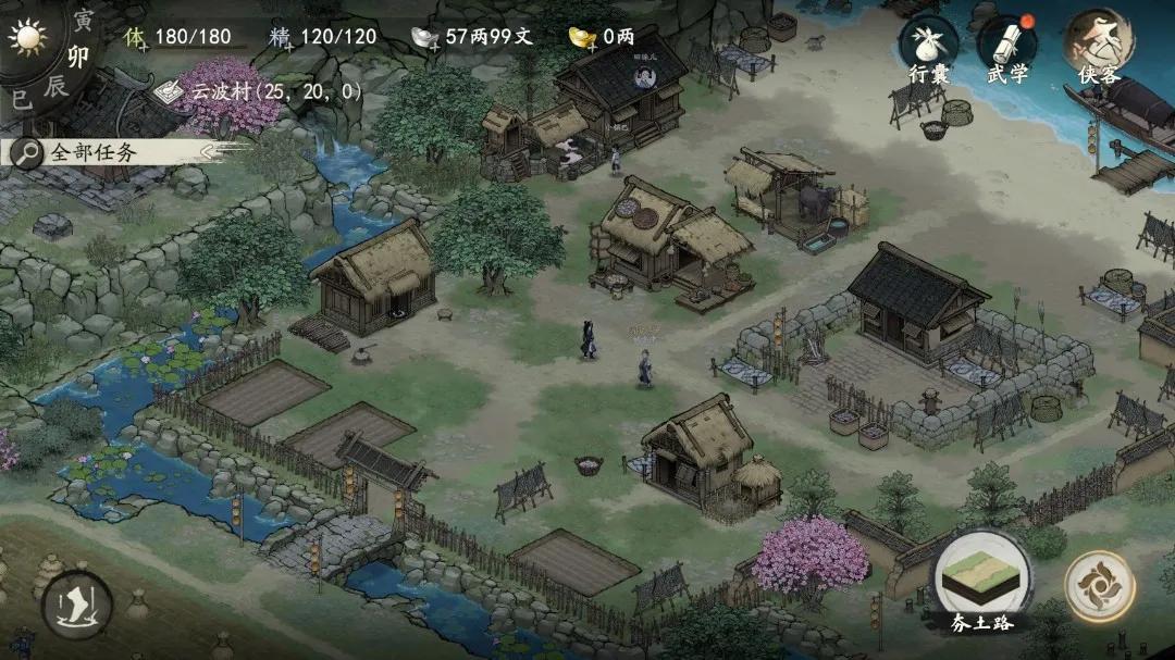 有的藏得比較淺,比如交談中聽說村長雨天腿會疼,那麼等到雨天去探望自然會有新劇情;有的藏得則比較深,往往需要幾條暗線併攏纔能有所推進,這又反過來推動玩家細緻地探索整個武俠世界。